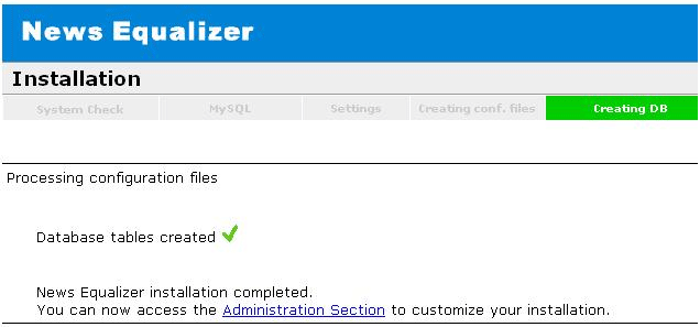 You will see following message if the database tables get created successfully.