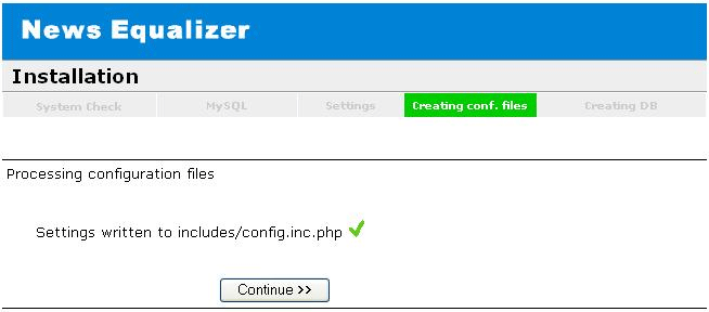 - Again click on ‘Continue' to create the Configuration File.