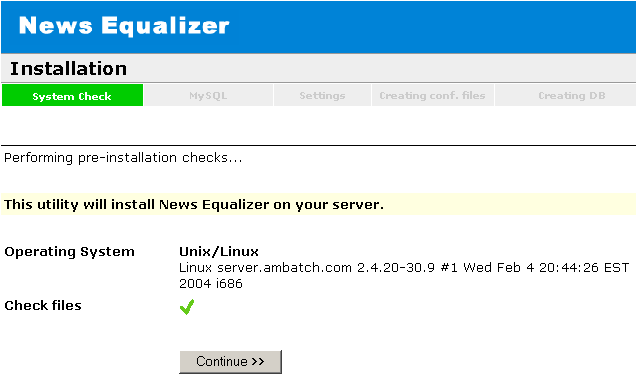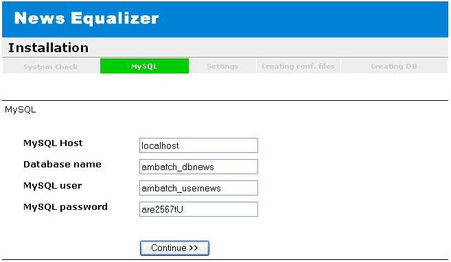 Click on Continue to reach the MySQL screen.