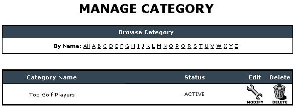 - Manage Category : This deals with the management of categories. All the created Categories are listed here. Facility for editing/deleting and even changing the status of the category is provided. Only the categories with ‘Active' Status are displayed. Option for searching category is also provided.