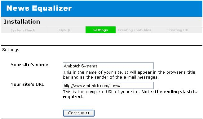 Click on ‘Continue' to reach Site Settings.